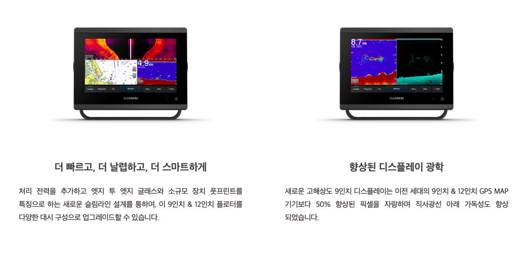 이전 세대의 GPSMAP 장치보다 50% 더 확장된 디스플레이 픽셀과 약 두 배의 처리 능력을 가진