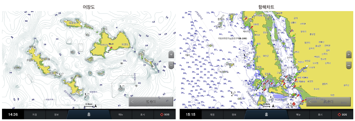 | 기본내장 | 베이스 맵 - 옵션 구매시 : 한국상세해도(어장도 지도 / 항해도 지도) |