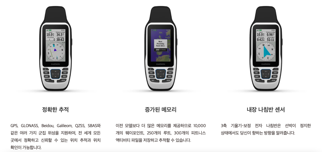 보트 또는 해양 스포츠용으로 사용 될 튼튼하고 뛰어난 전문 해상용 휴대형 GPS를 찾으시는 분께 소개 해드립니다. 한글 메뉴, 한글 지명이 탑재 된 상세 한국 연안지도를 제공하며 전문 해상용 제품답게 고무 그립에 물에 뜰 수 있게 설계되어 있습니다. 또한 뛰어난 수신률과 높은 측위 정확도를 자랑합니다.
