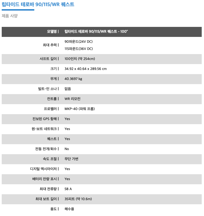 립타이드 테로바 퀘스트 모터, WR 리모컨, 이더넷 케이블 9m(AS EC 30E), 헬릭스용 이더넷 어댑터 케이블(AS EC QDE), 모터 매뉴얼(한국어), 리모컨 매뉴얼(한국어)