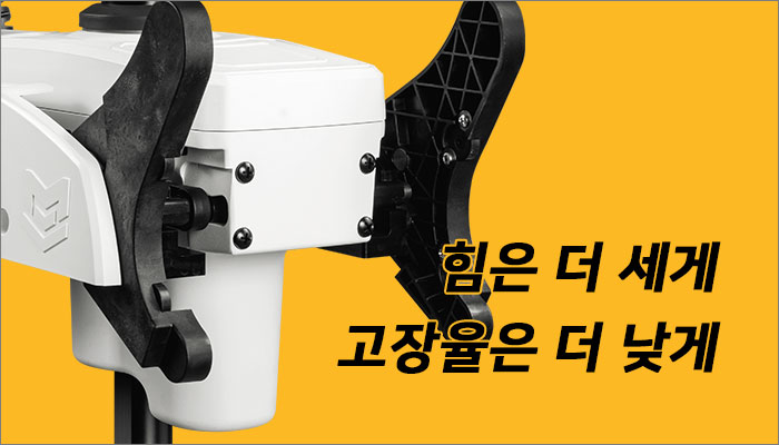 모터의 높낮이를 조절해주는 뎁스 콜라가 새롭게 디자인되었습니다. 더 이상 노브를 돌리는 수고를 할 필요가 없으며, 노브를 잃어버릴 염려를 할 필요도 없습니다.