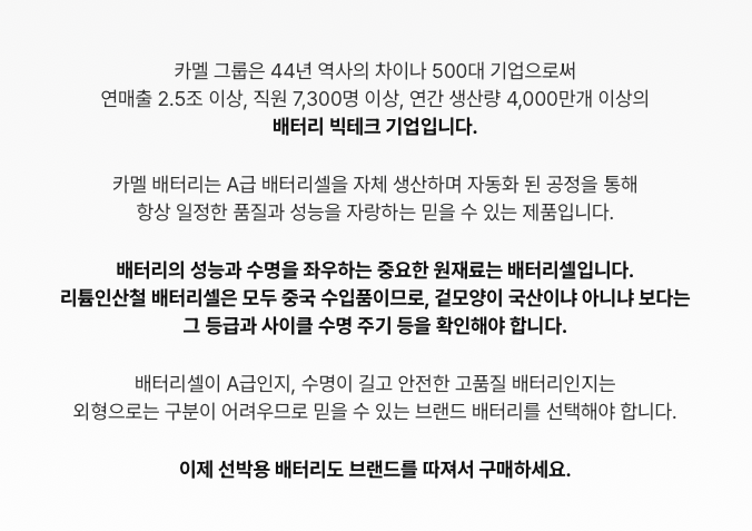 카멜 인산철배터리 25.6V/105A [금호마린테크]