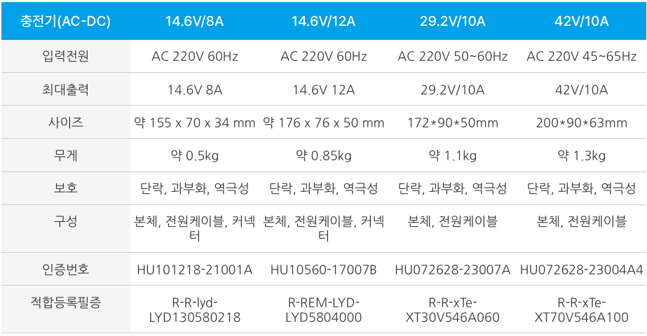 - 3. 동일 전압의 품목의 경우, 전류에 따라 충전시간이 달라집니다.