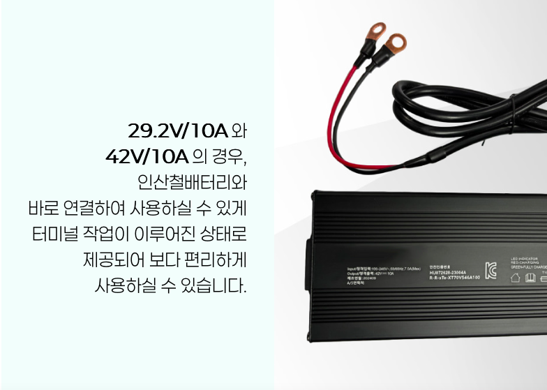 전류가 높을수록 보다 더 빠른 충전이 가능하오나, 고객님의 운용 상황에 맞게 선택하세요. - 4. 입력, 출력, 극성(+,-) 꼭 확인하고 연결하십시오.