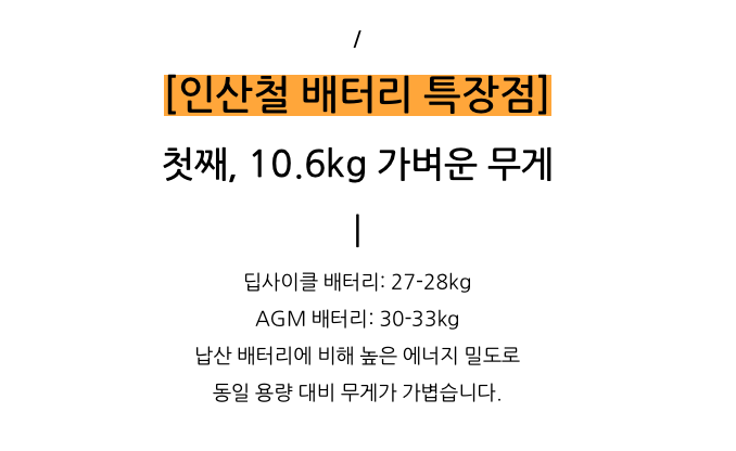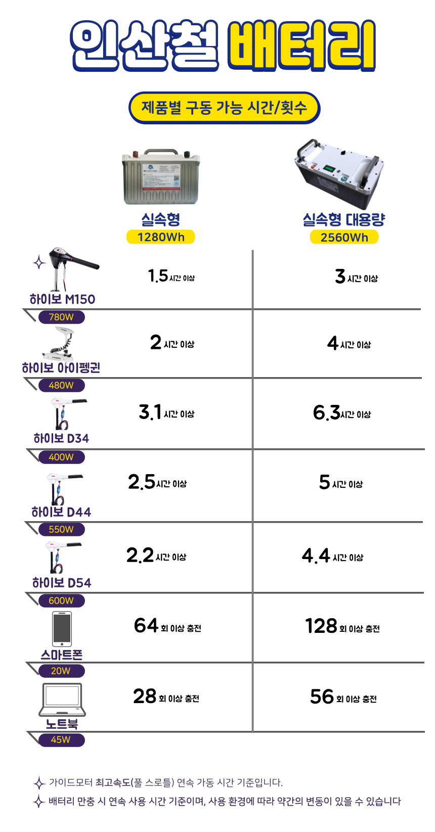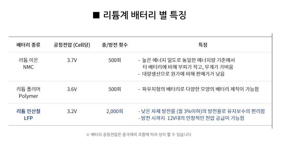 인산철 배터리 용량과 품질은 그대로 유지하였습니다.
